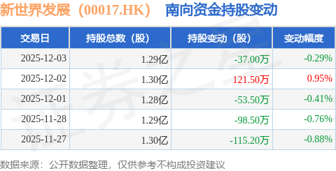 本站消息,12月3日南向资金减持37.0万股新世界发展(00017.HK)。近5个交易日中,获南向资金减持的有4天,累计净减持182.7万股。近20个交易日中,获南向资金减持的有15天,累计净减持664.4万股。截至目前股市里的配资是什么意思,南向资金持有新世界发展(00017.HK)1.29亿股,占公司已发行普通股的5.13%。